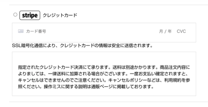 お支払い方法は、クレジットカードです。商品申込みカートで決済会社Stripe経由で、カードにてお支払い頂きます。